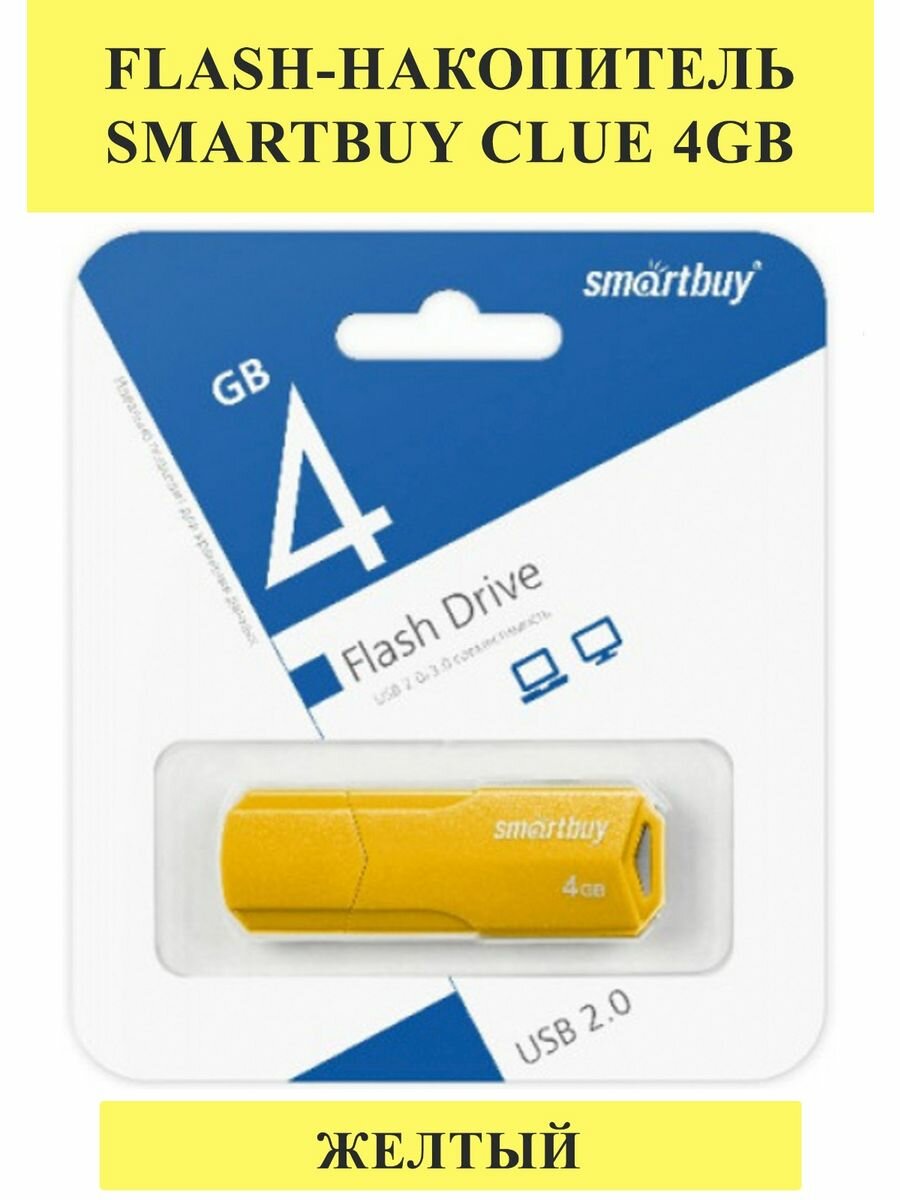 USB Flash накопитель 4Gb SmartBuy Clue Yellow (SB4GBCLU-Y)