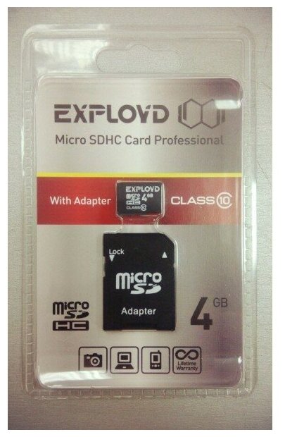 Карта памяти (EXPLOYD MicroSDHC 4GB Class10 + адаптер SD) 299 ₽ Подробнее
