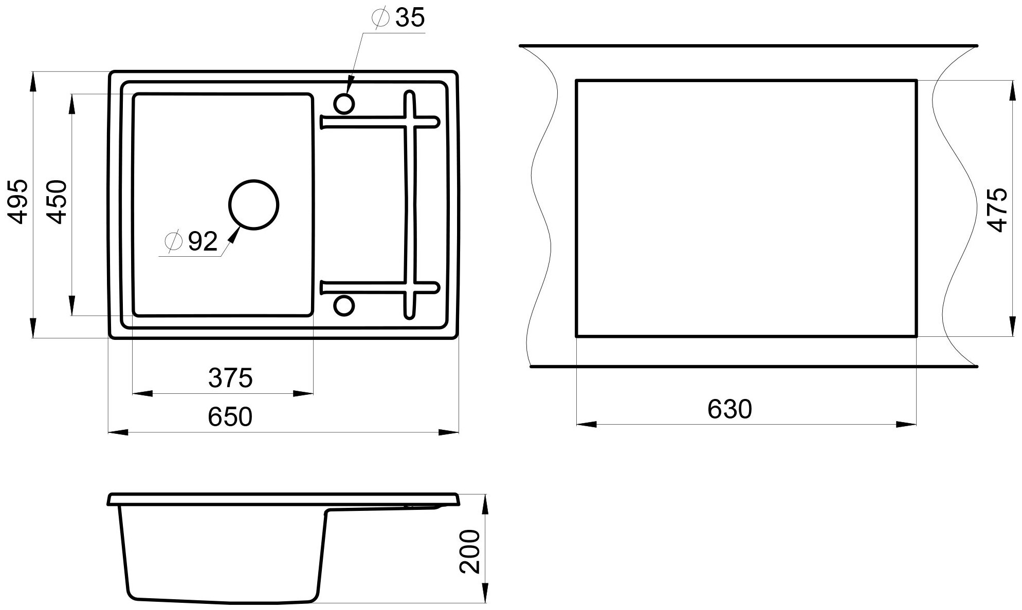 Кухонная мойка GR-6501 650*495мм черный
