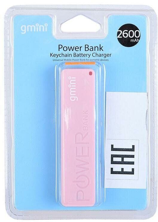 Внешний аккумулятор Power Bank 2600 мАч Gmini GM-PB026-P розовый