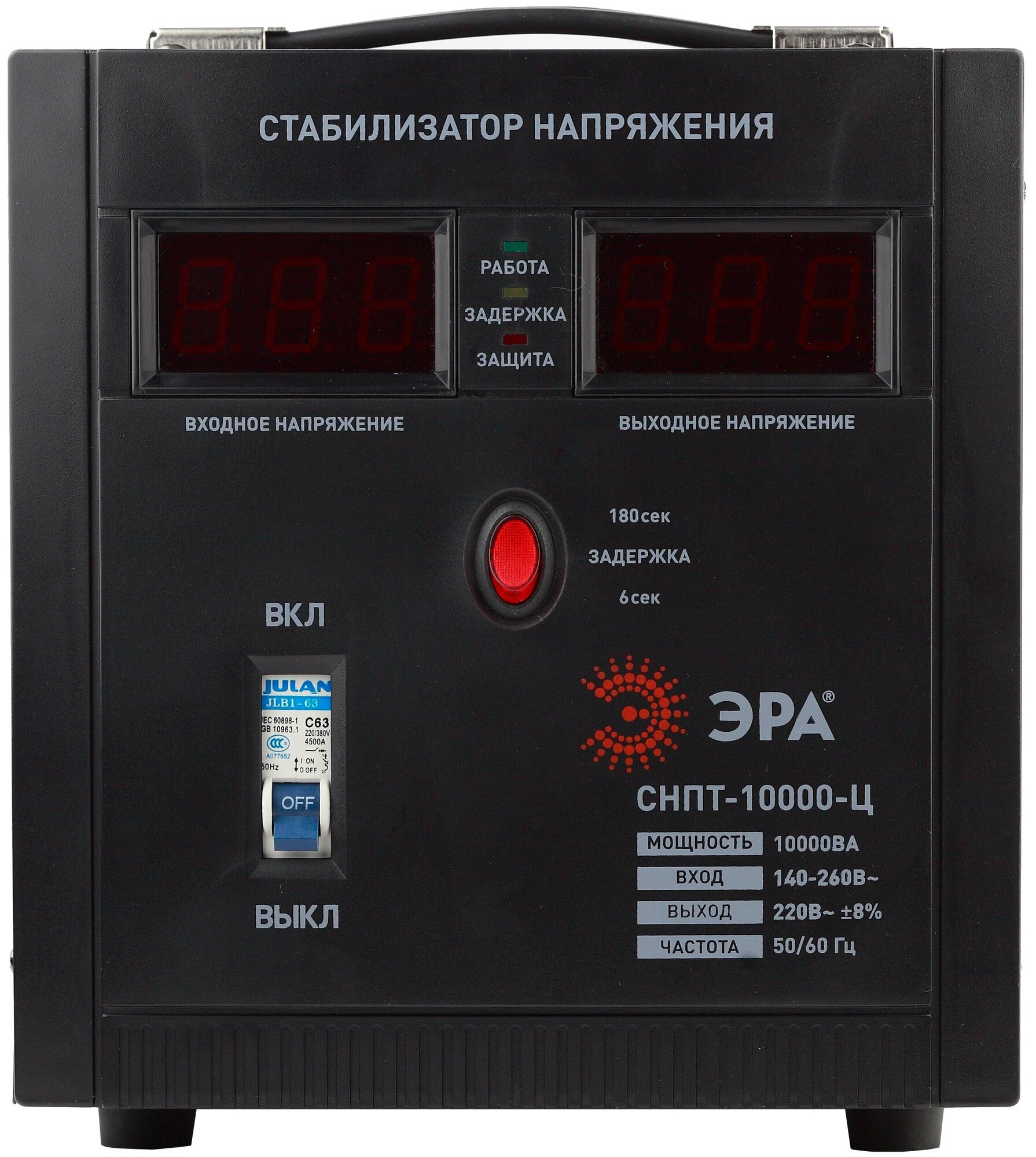 Стабилизатор напряжения однофазный ЭРА СНПТ-10000-Ц черный 10000 ВА 220 мм 410 мм 256 мм 15.7 кг