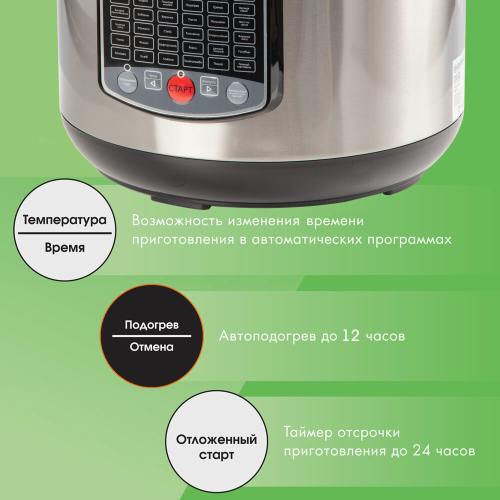 Мультиварка ENDEVER Vita-90 black/steel (Мощность: 980 Вт, объем 5л) (80287)