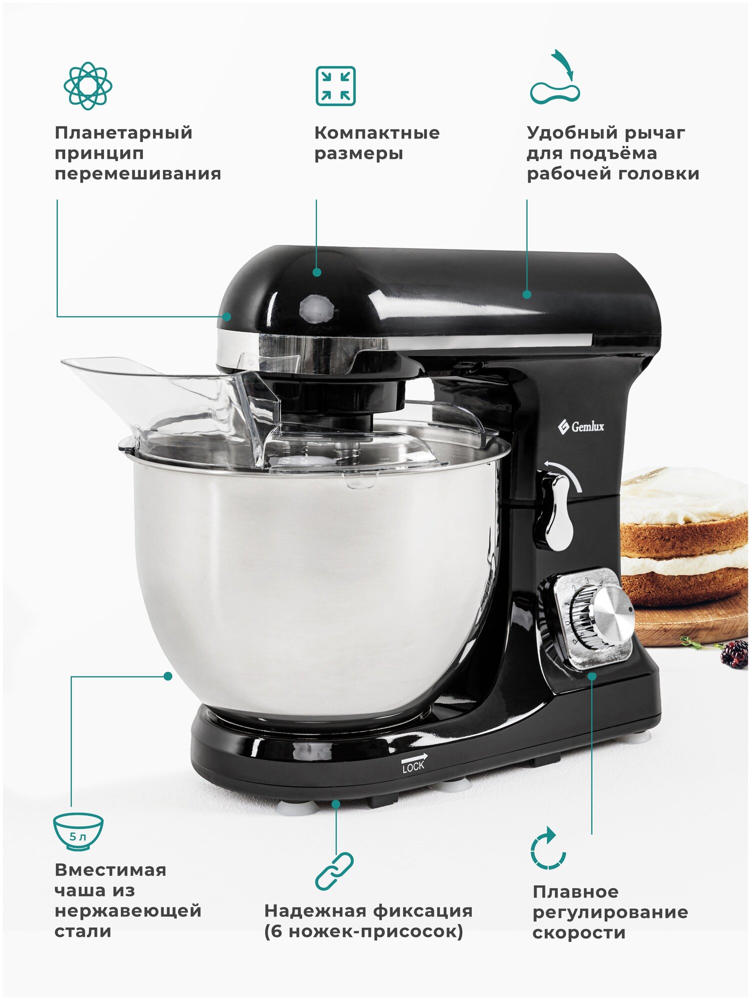 Миксер планетарный "Gemlux" GL-SM5.2B, 5л (1,0кВт)
