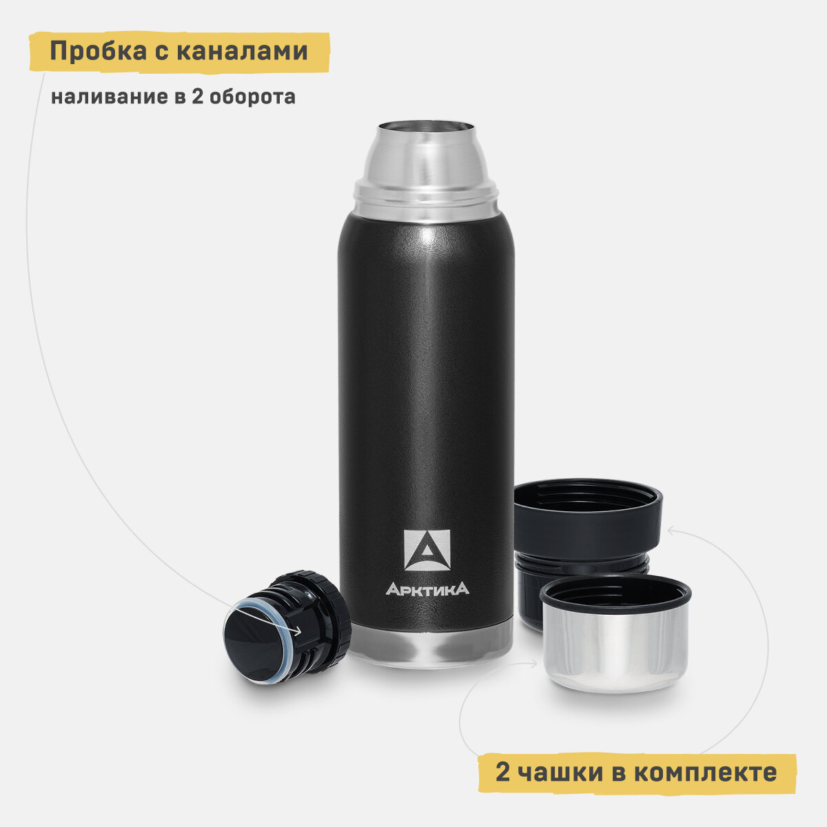 Термос "Арктика" 106, 900 мл, сохраняет тепло 28 ч, черный
