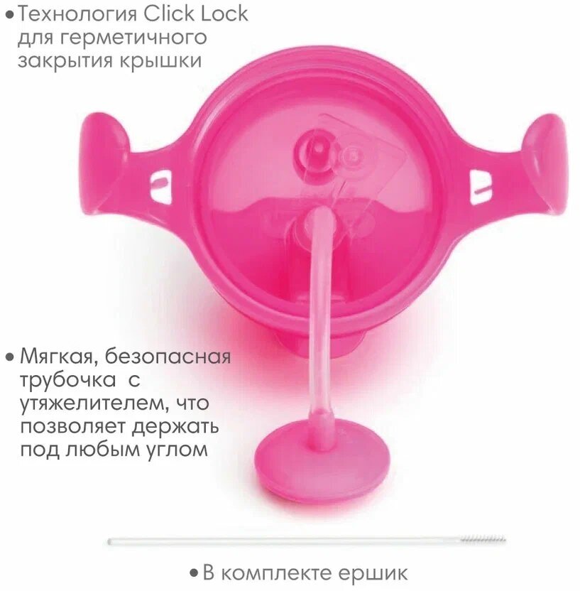 Munchkin поильник Click Lock с трубочкой и ручками Розовый 207 мл. 6+