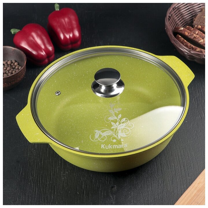 Кастрюля-жаровня KUKMARA Ж31TSML, малахитовый, крышка стекло с металл. кнопкой