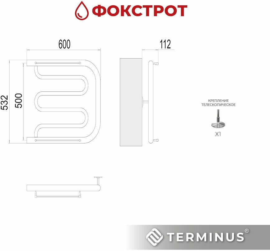 Фокстрот полотенцесушитель TERMINUS (600 мм / 532 мм / 500 мм) 6 190 ₽ Подробнее