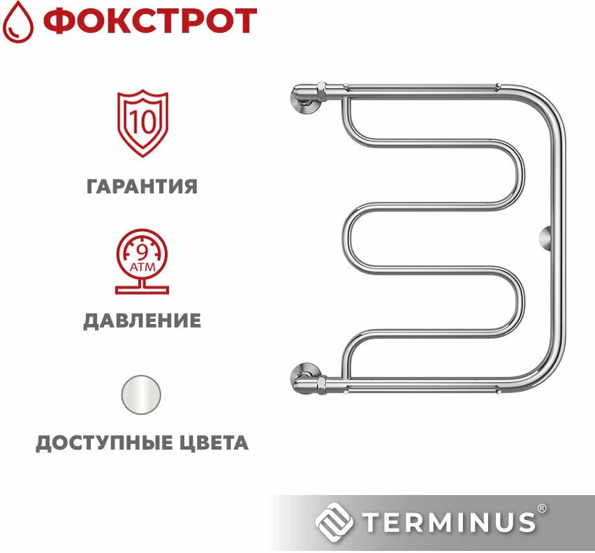 Полотенцесушитель для ванны Terminus водяной Фокстрот 50х60, нержавеющая сталь боковой тип подключения, змейка(М-образный) Гаратния-10 лет