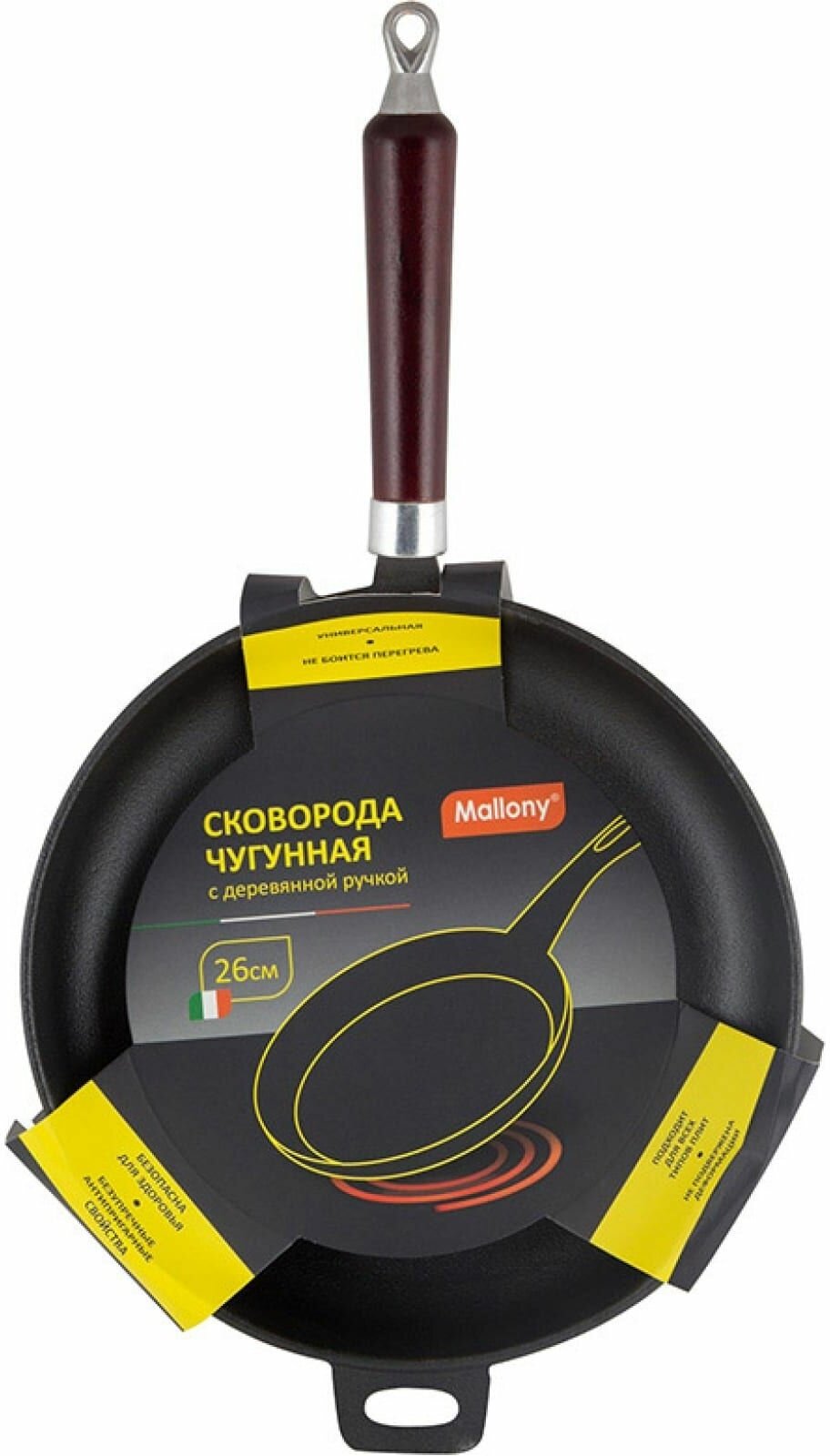 Сковорода чугунная с деревянной ручкой Mallony CIF26-W
