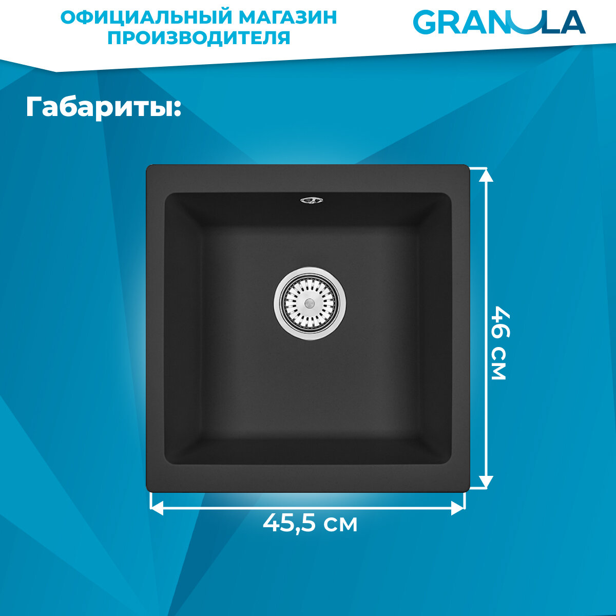 Мойка для кухни врезная кварц GRANULA 46x45x20 Кухонная раковина в комплекте с сифоном. Цвет черный