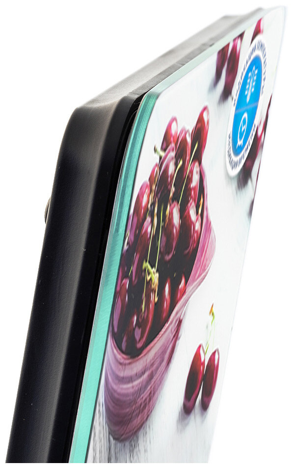 Весы Кухонные10кг ЖК Диспл Индик Заряд Бат,перегр,темп Часы 20Х18,3СМ Стекло Вишня Vitek .