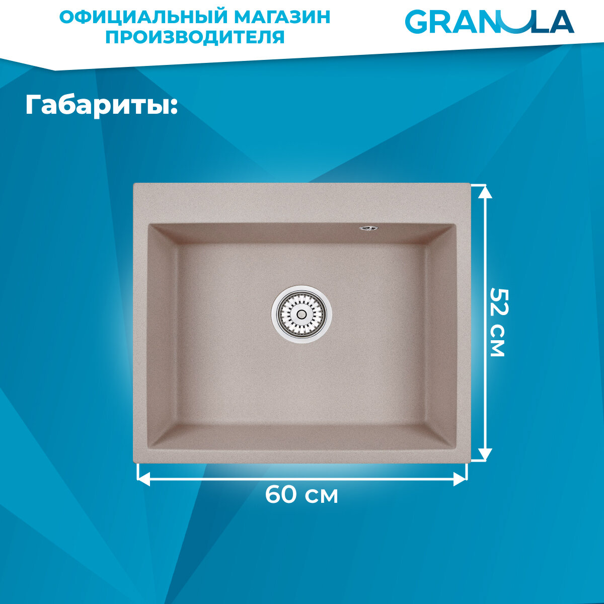 Кухонная мойка GRANULA 6001, кварц, 52см х 60см