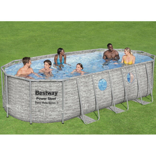 Каркасный бассейн Bestway Каркасный овальный бассейн 56716 Bestway Power Steel Swim Vista 549*274*122 см, фильтр-насос, аксессуары 56716