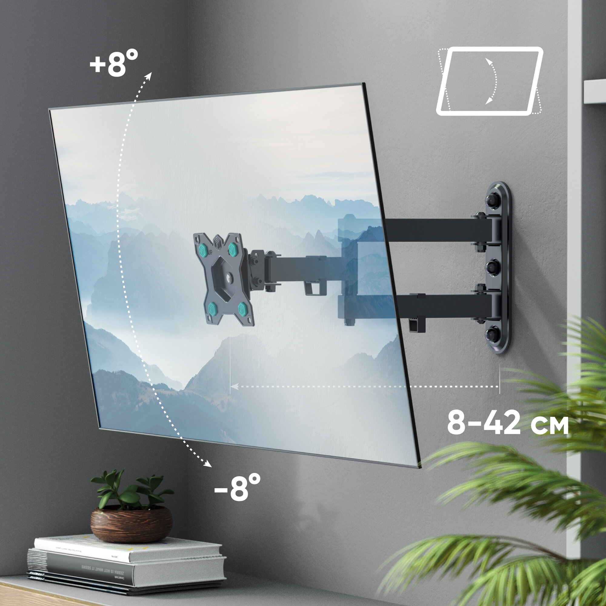 Кронштейн ONKRON/ 17-27"" макс 100*100 мм, 2 колена, наклон -+ 8?, поворот: 180°, от стены 65-408 мм, макс вес 25кг, черный 2 813 ₽ Подробнее