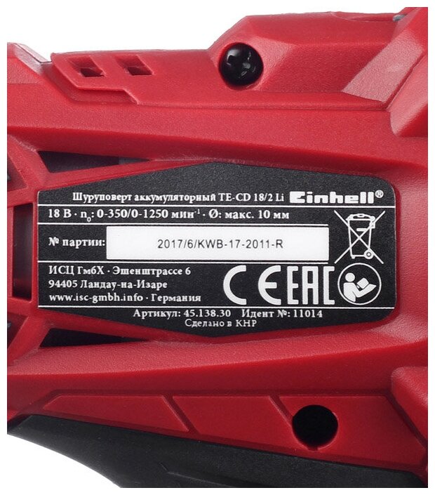 Аккумуляторная дрель-шуруповерт Einhell TE-CD 18/2 Li 4513830