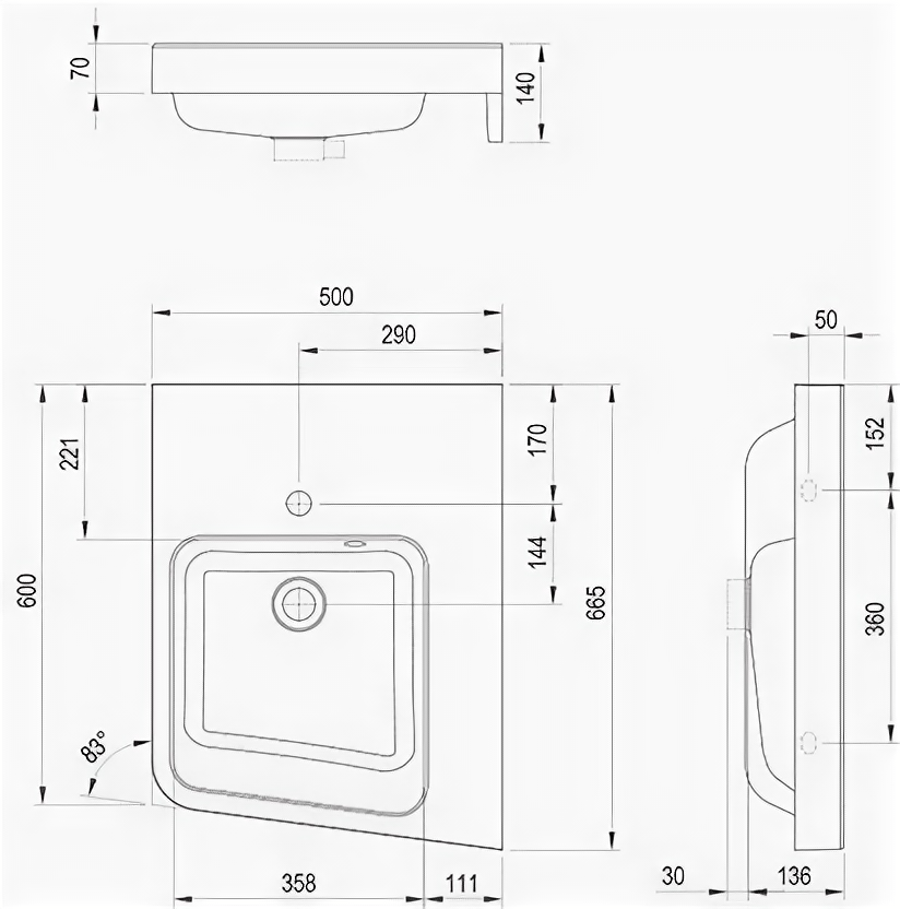 | Отверстие под смеситель | + |