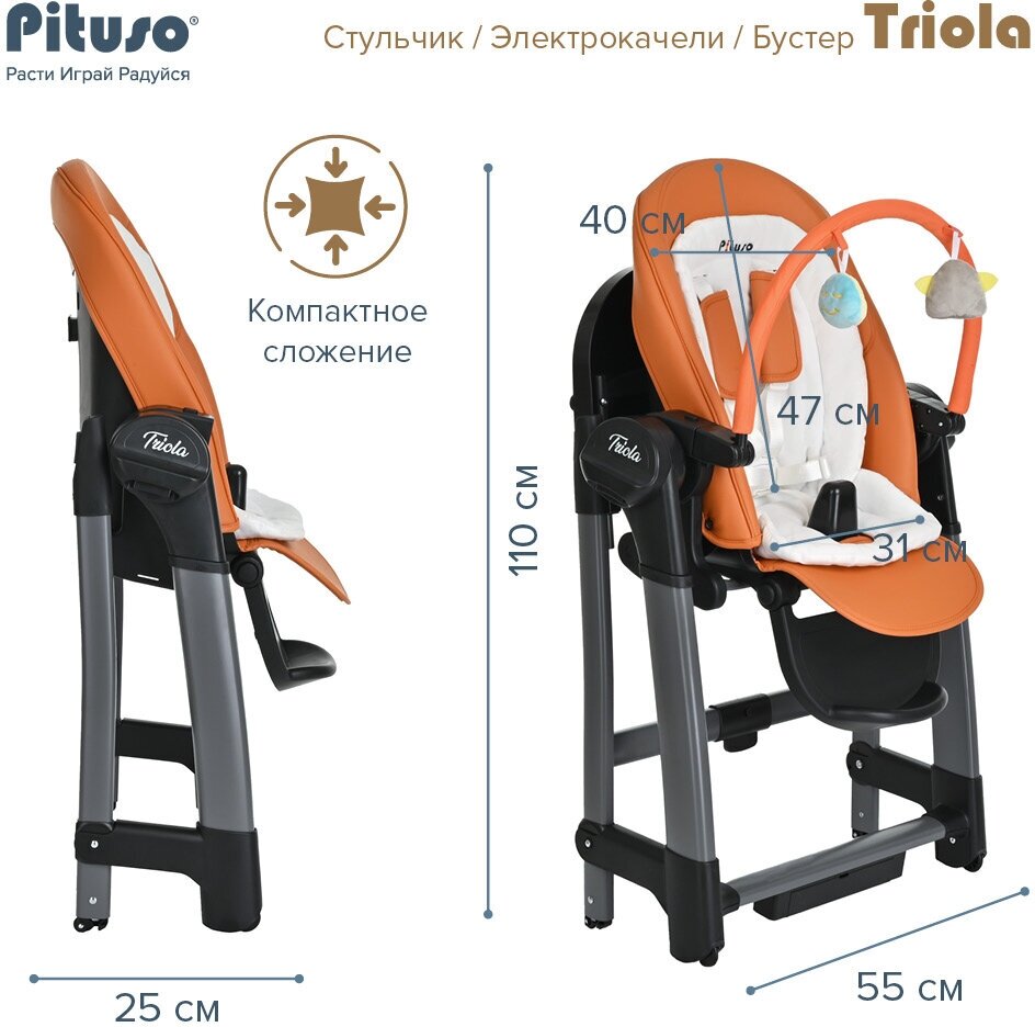 Стульчик для кормления Pituso Triola 3 в 1 Ocher/Охра(Оранжевый, черная рама) 22 500 ₽ Подробнее