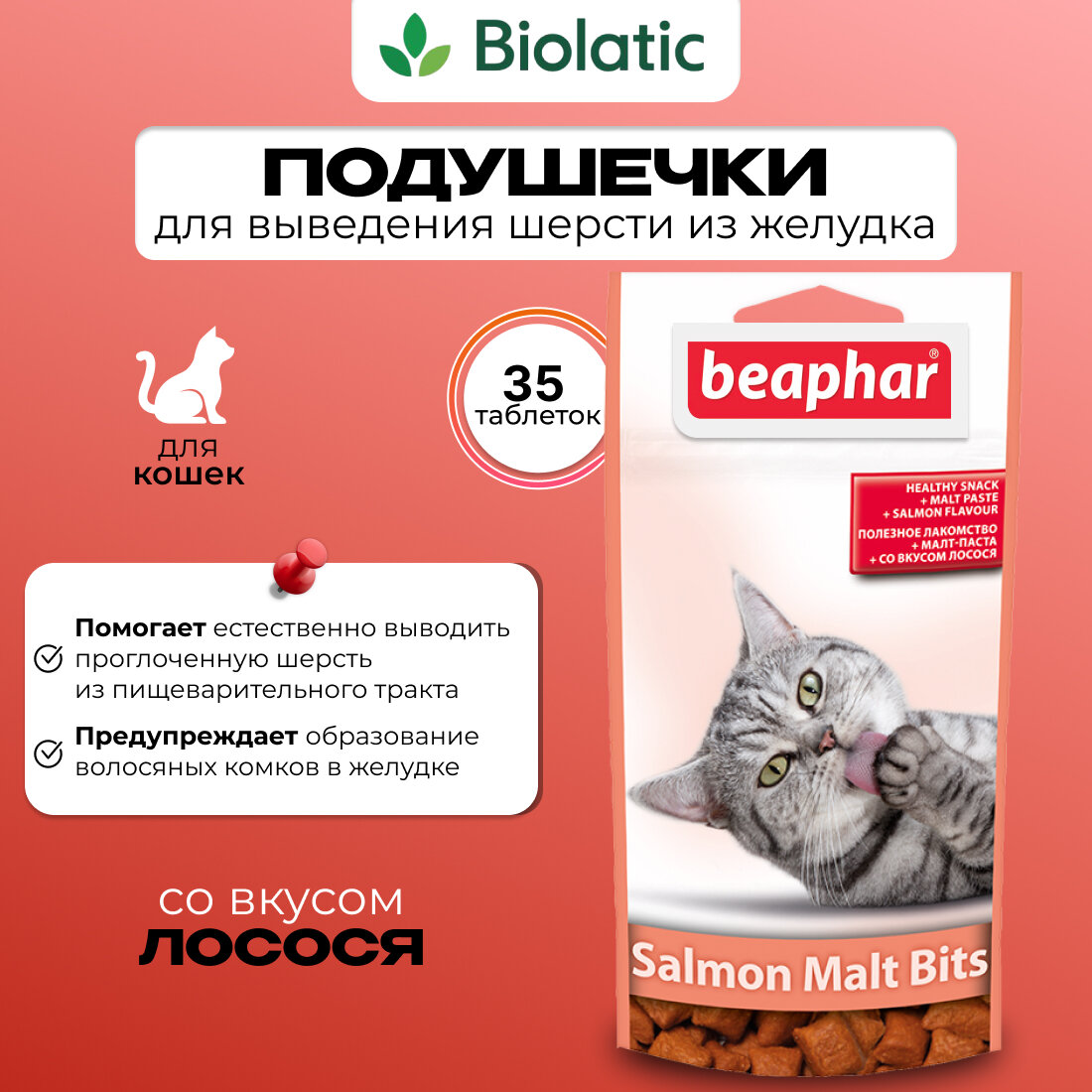 Beaphar Подушечки Salmon Malt Bits для выведения шерсти из желудка у кошек 35 г