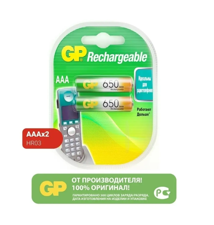 Аккумулятор Ni-Mh 650 мА·ч GP Rechargeable 650 Series AAA 2 шт блистер