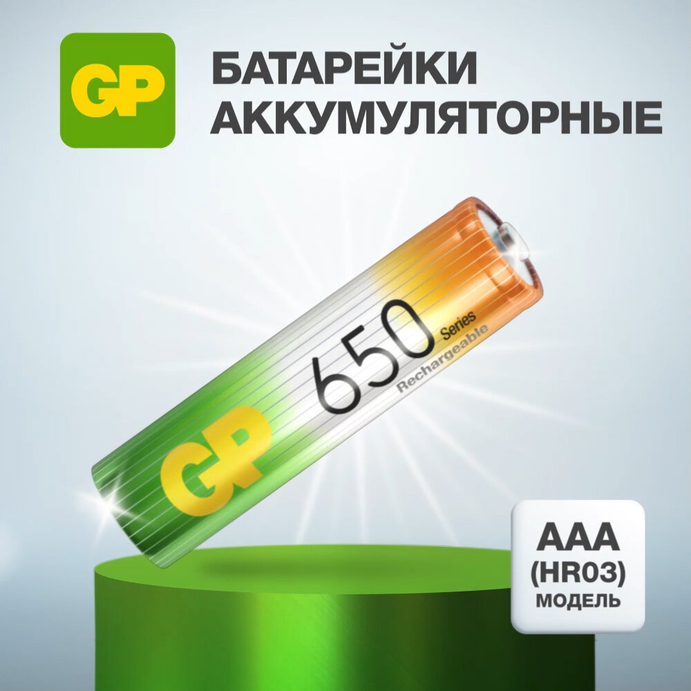 Аккумуляторы и батарейки Аккумулятор GP 650 mAh, AAA, NiMh, блистер, 2 шт