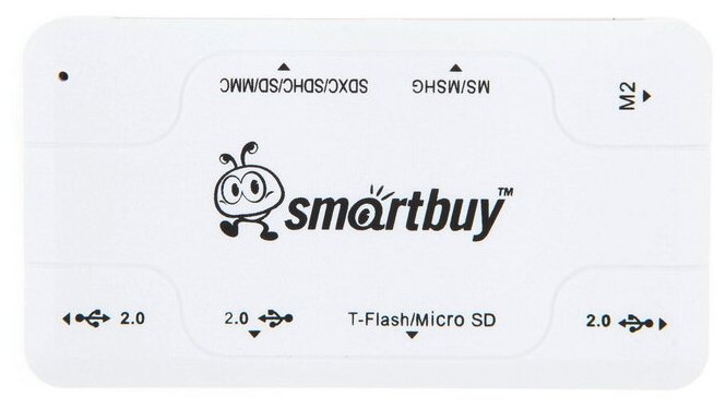 Картридер + Хаб Smartbuy 750, USB 2.0 3 порта+SD/microSD/MS/M2 Combo, белый (SBRH-750-W)