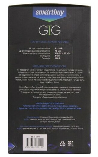 Акустическая система SmartBuy GIG SBA-4200, стационарная, цвет черный