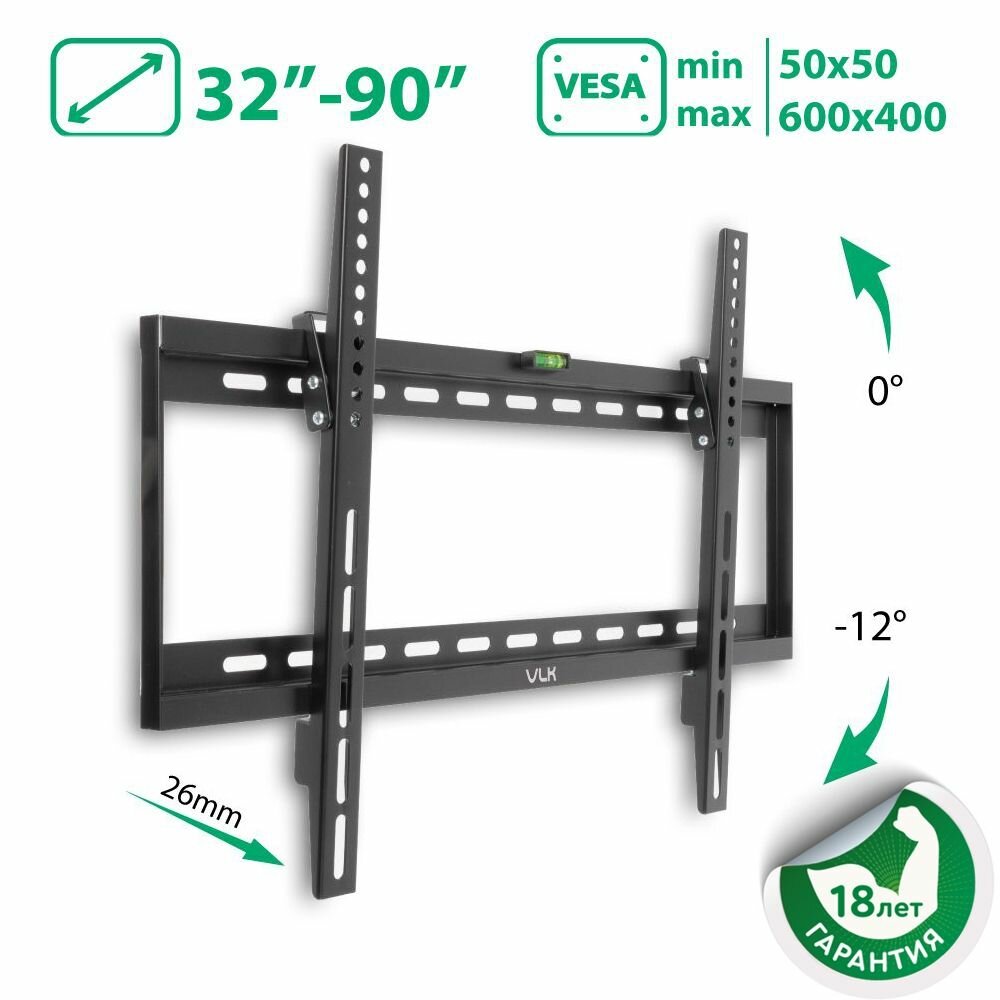 Кронштейны для техники VLK Кронштейн настенный VLK TRENTO-32 32-90" (наклон 0 -8°, вылет 26мм, до 50 кг, черный)