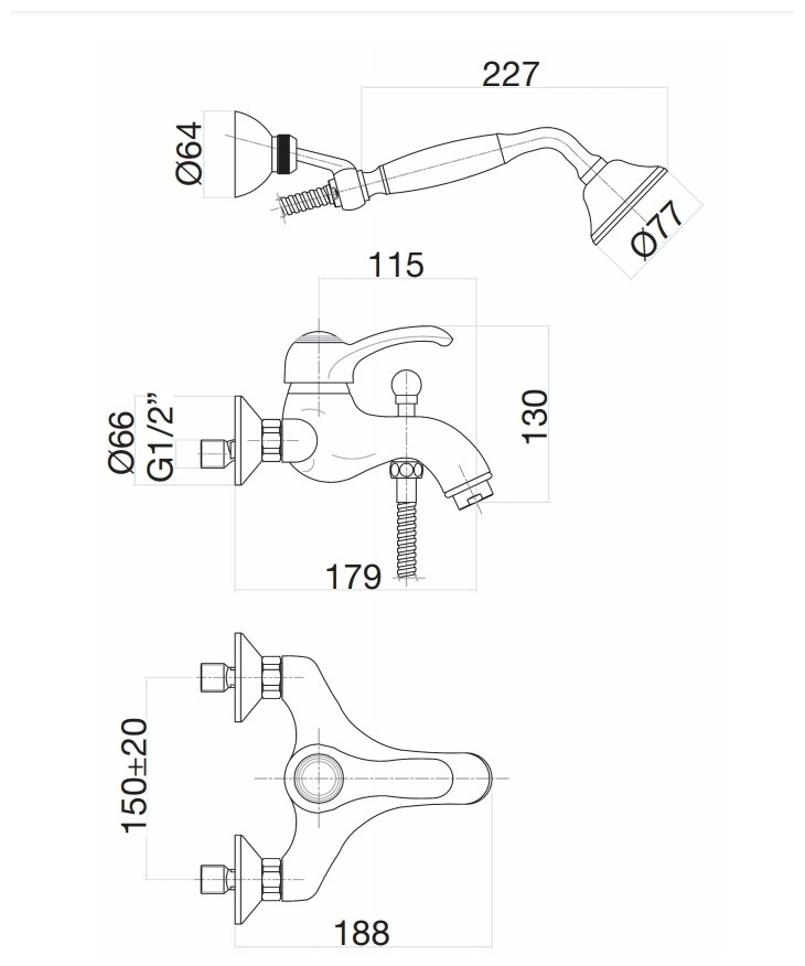 Лучшие цены. Смеситель для ванны Fiore Jafar 47ZZ5104. Характеристики: - Материал: латунь, керамика. - Цвет: бронза. - Автоматический переключатель: ванна/душ. - Керамический картридж. - Металлический рычаг. - Аэратор. - Душевой гарнитур: ручной душ с керамической ручкой, душевой шланг длиной 150 см, настенный держатель. - Стандарт подключения: G 1/2. - Монтаж: настенный. В комплекте поставки: смеситель, душевой гарнитур. Магазины в вашем городе.