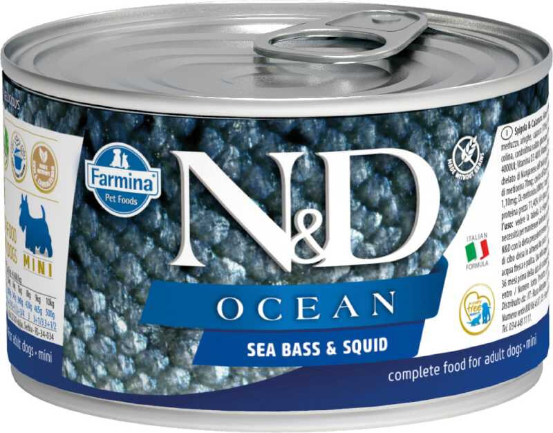 Farmina N&D Ocean Dog Mini влажный корм для взрослых собак мелких пород с сибасом и кальмаром - 140 г (6 шт в уп)