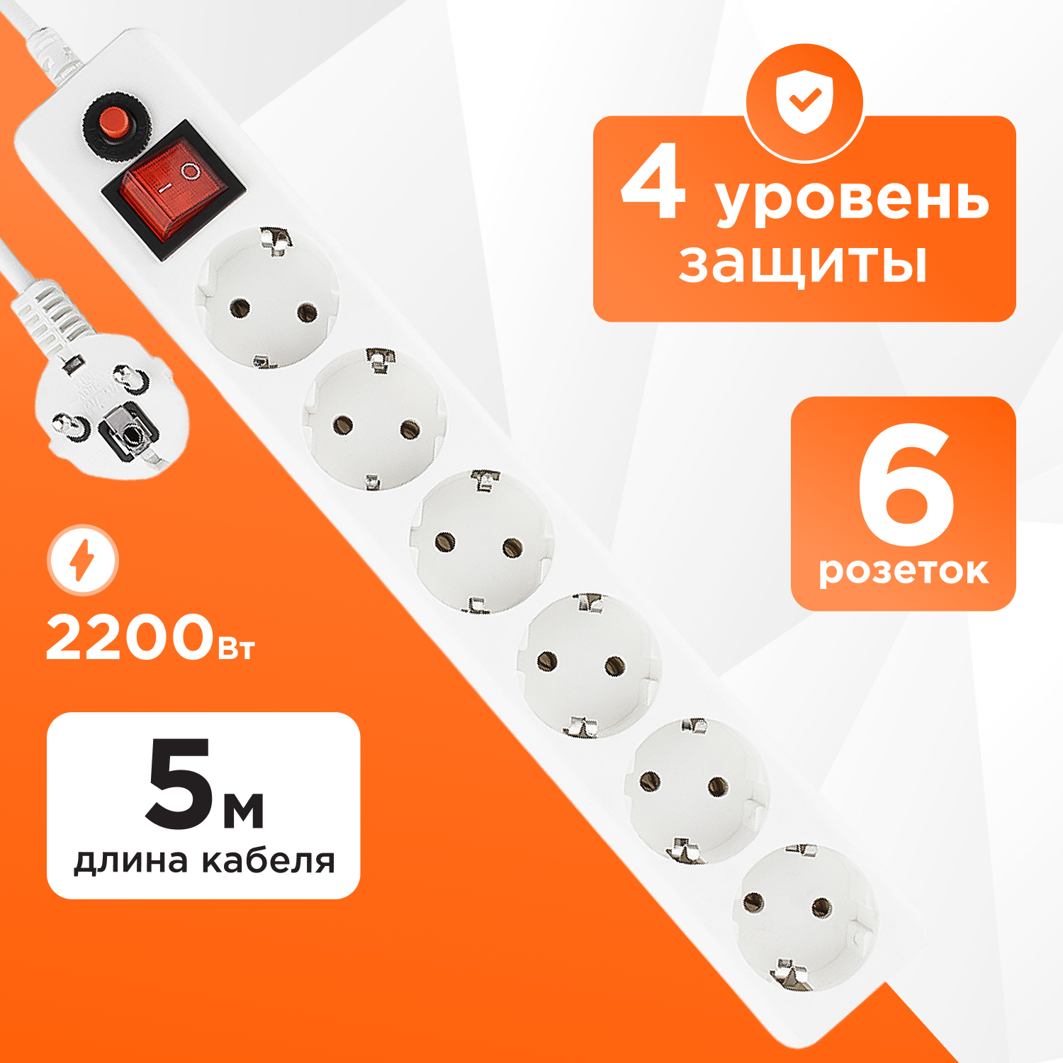 Сетевой фильтр "Гарнизон", 6 розеток, 5 м, 10 А, 2200 Вт, белый Гарнизон 1432416 . 1 241 ₽ Подробнее