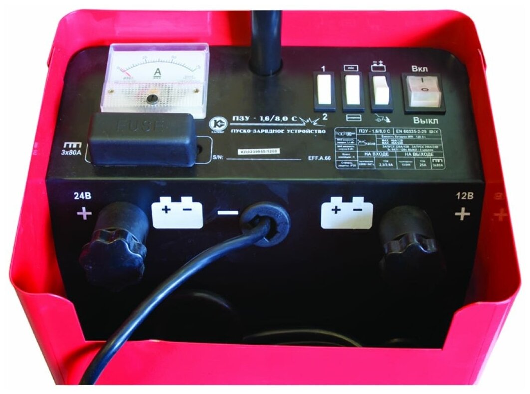 Пуско-зарядные устройства Пуско-зарядное устройство "калибр" ПЗУ-1,6/8,0С (1600Вт, запуск 4000/8000Вт, 12/24В, ёмкость 100-600Ач)