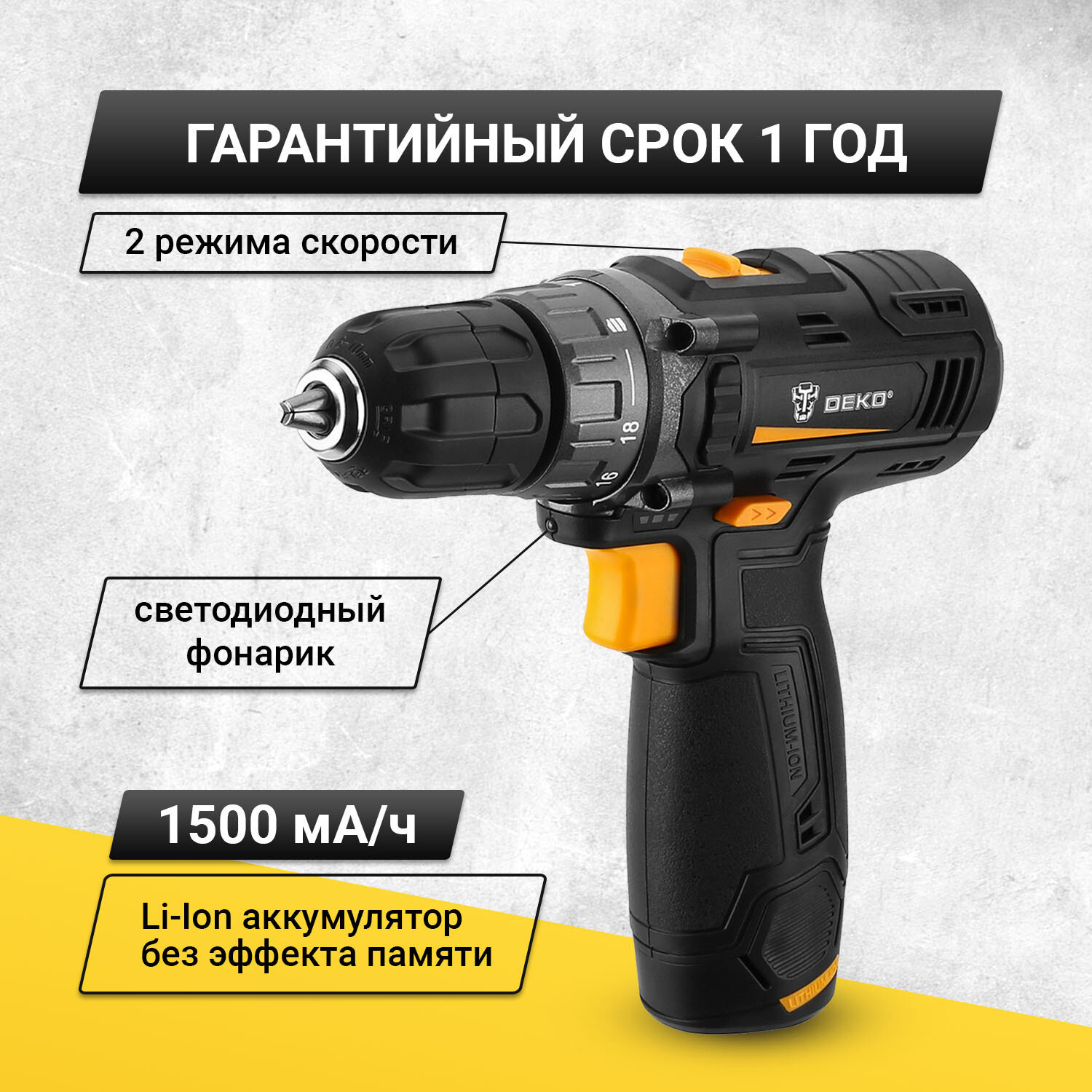 Дрель-шуруповерт аккумуляторная DEKO GCD12DU3 1*12В 1.5Ач