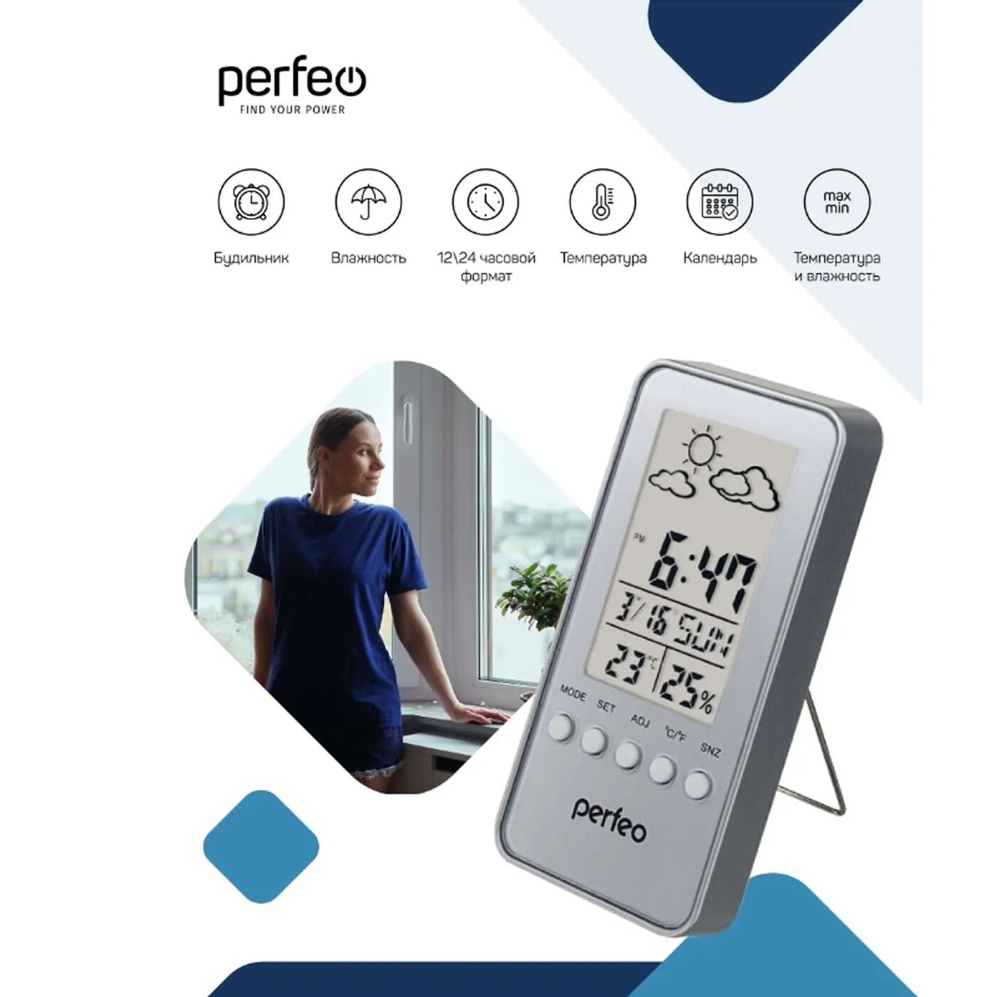 Часы-метеостанция PERFEO PF_A4864 WINDOW - PF-S002A электронные, серебряный