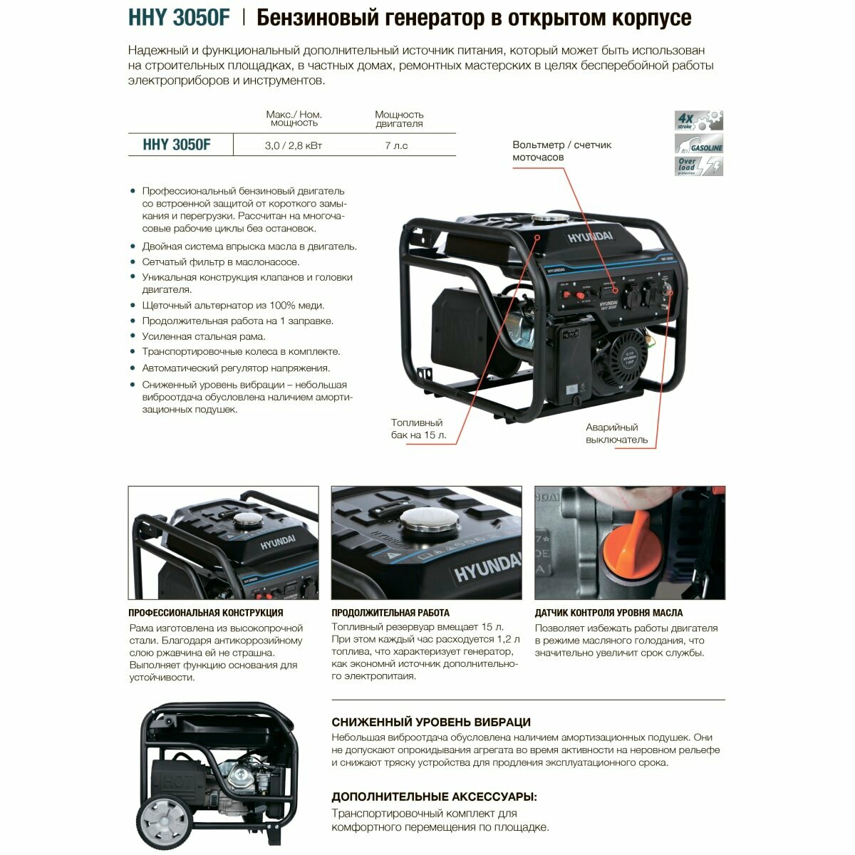 Электрогенератор Генератор бензиновый HYUNDAI HHY 3050F