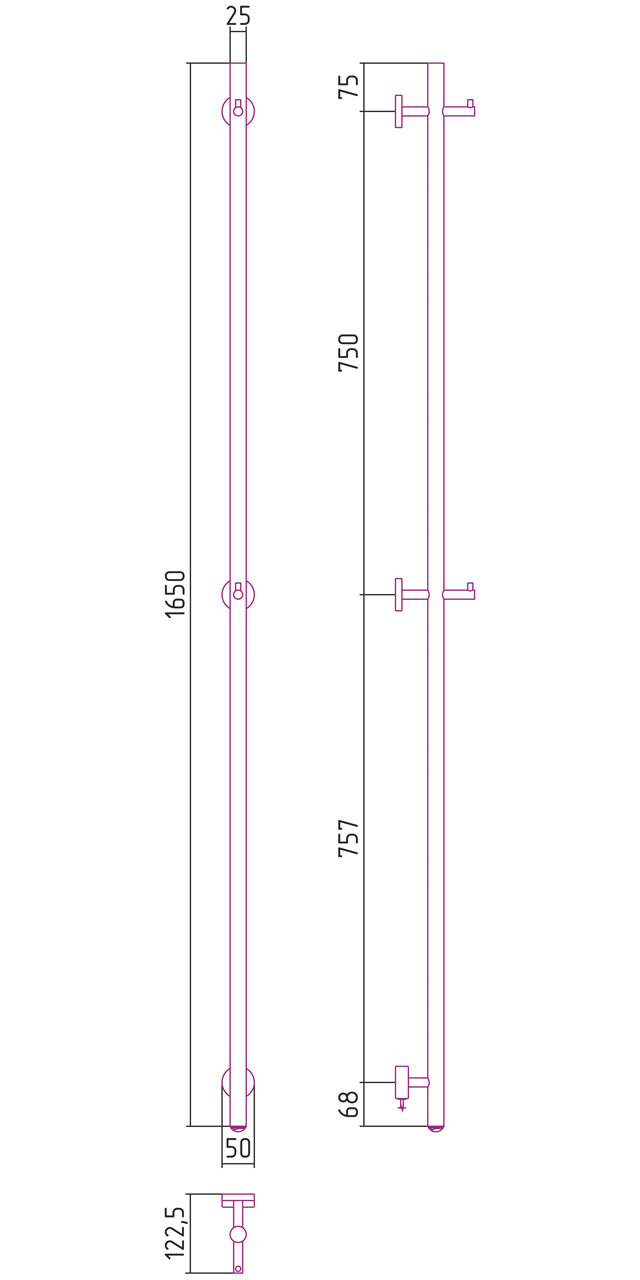 | Габариты (ШхВхГ) | 25x1650x123 мм |