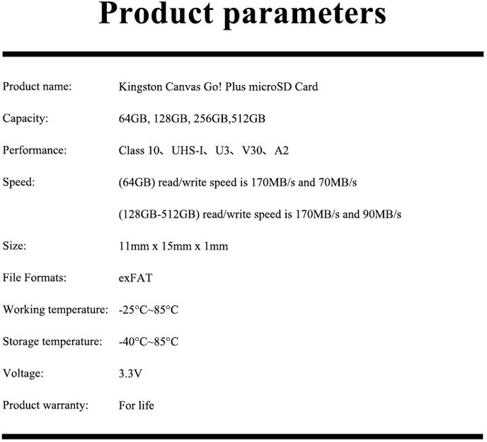 Карта памяти Micro SecureDigital 64Gb Kingston Canvas Go Plus SDXC class 10 UHS-I U3 V30 A2