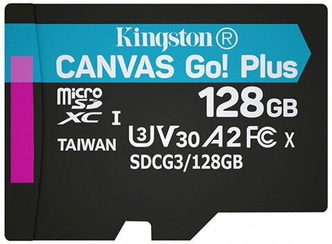 Карта памяти Kingston CANVAS Go! Plus - SDCG3/128GB - microSDXC UHS-I, U3, V30, A2 - 170/90МБ/с без адаптера