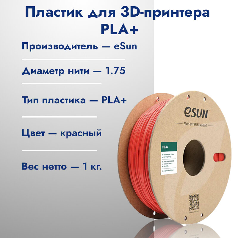 Катушка PLA+ пластик для 3D принтера ESUN 1.75 Красный 1кг
