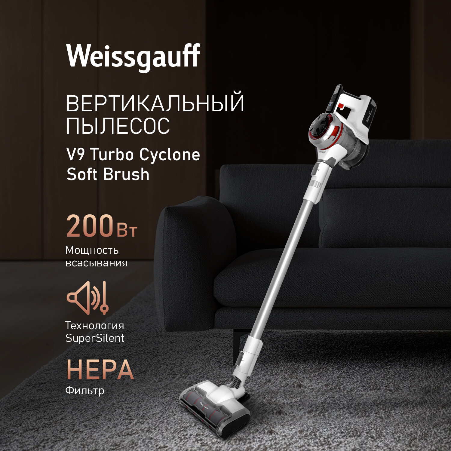 Пылесосы Вертикальный беспроводной пылесос Weissgauff V9 Turbo Cyclone Soft Brush