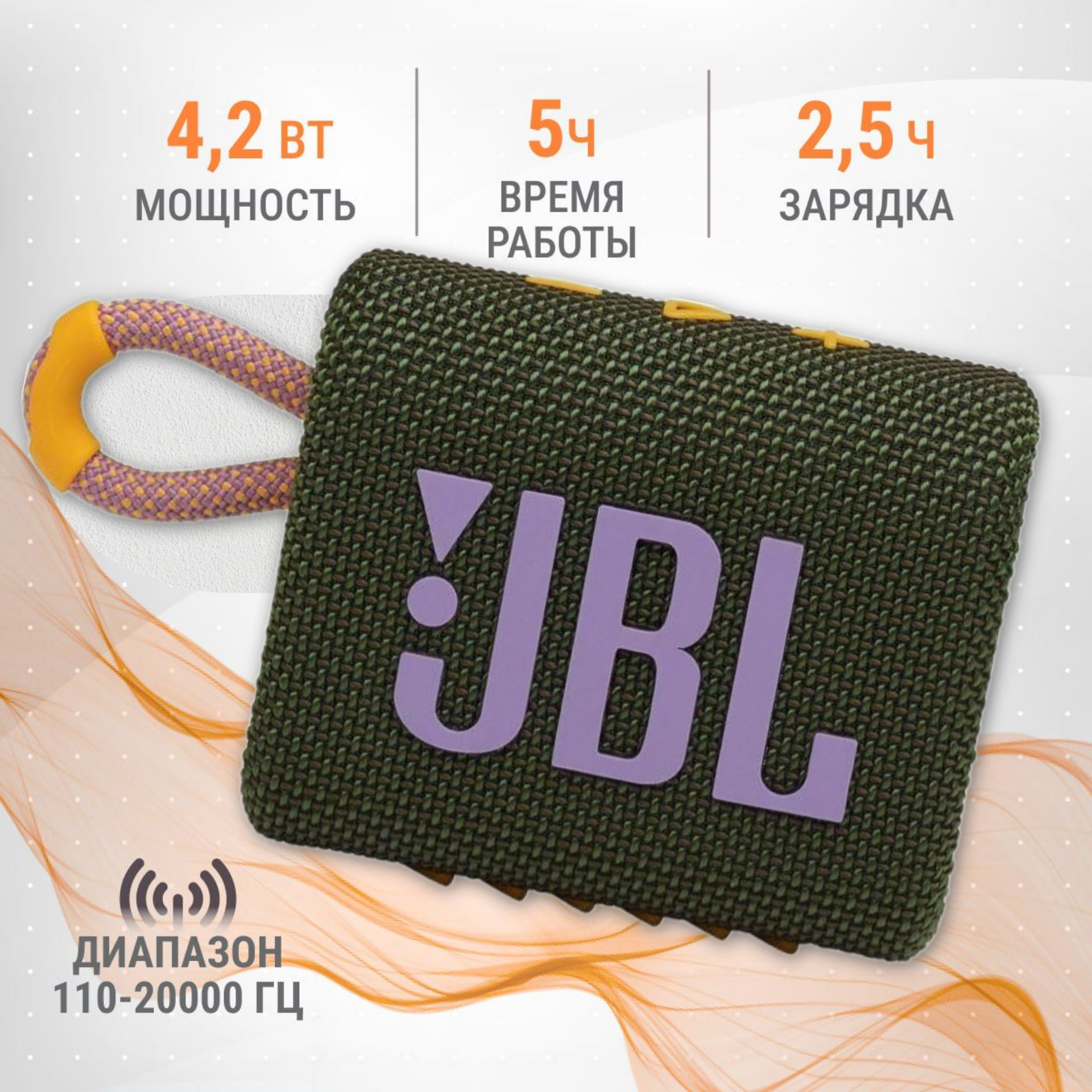 Портативная беспроводная колонка ;JBL GO 3; 85 дБ; 540 мА*ч; IP67; 5 ч; зелёная