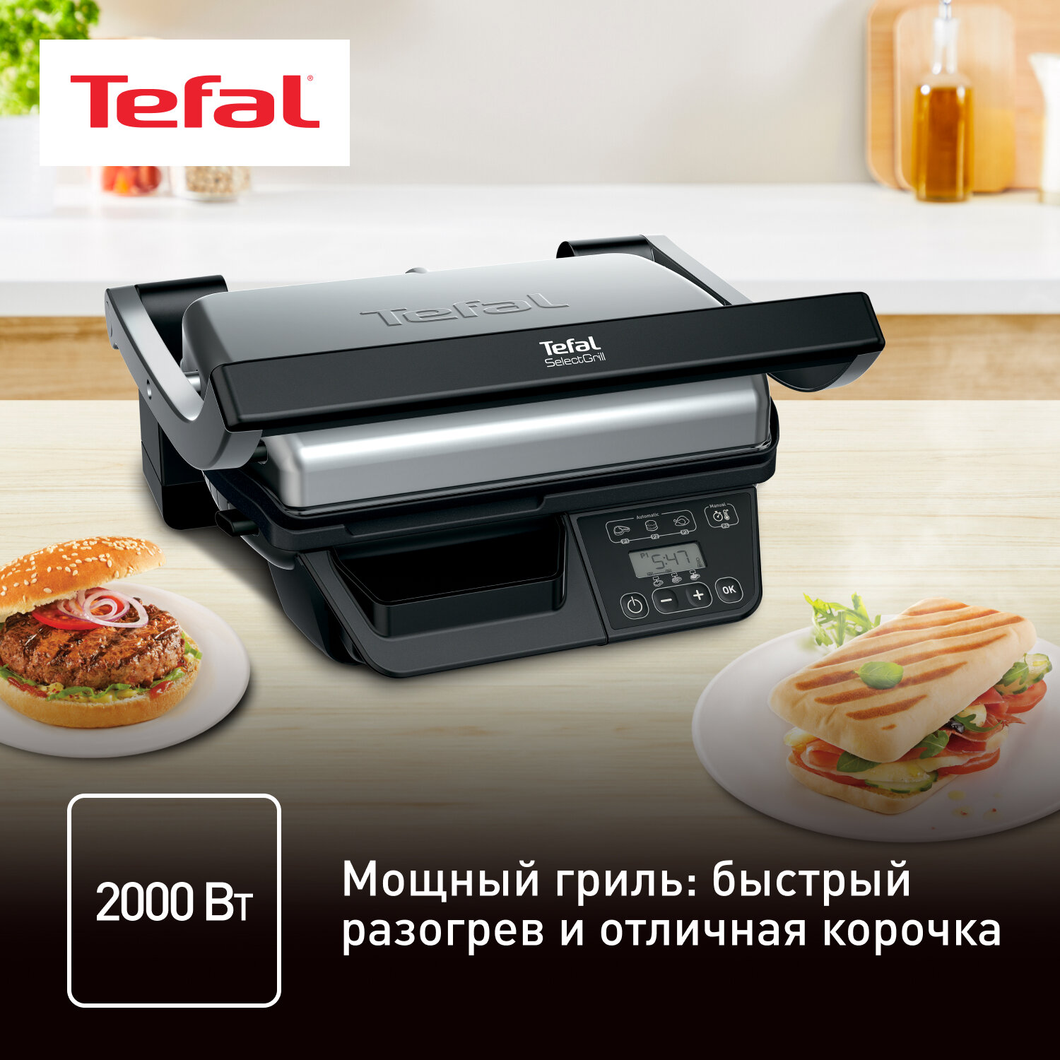 Электрогриль Гриль Tefal SelectGrill GC740B30, серебристый/черный
