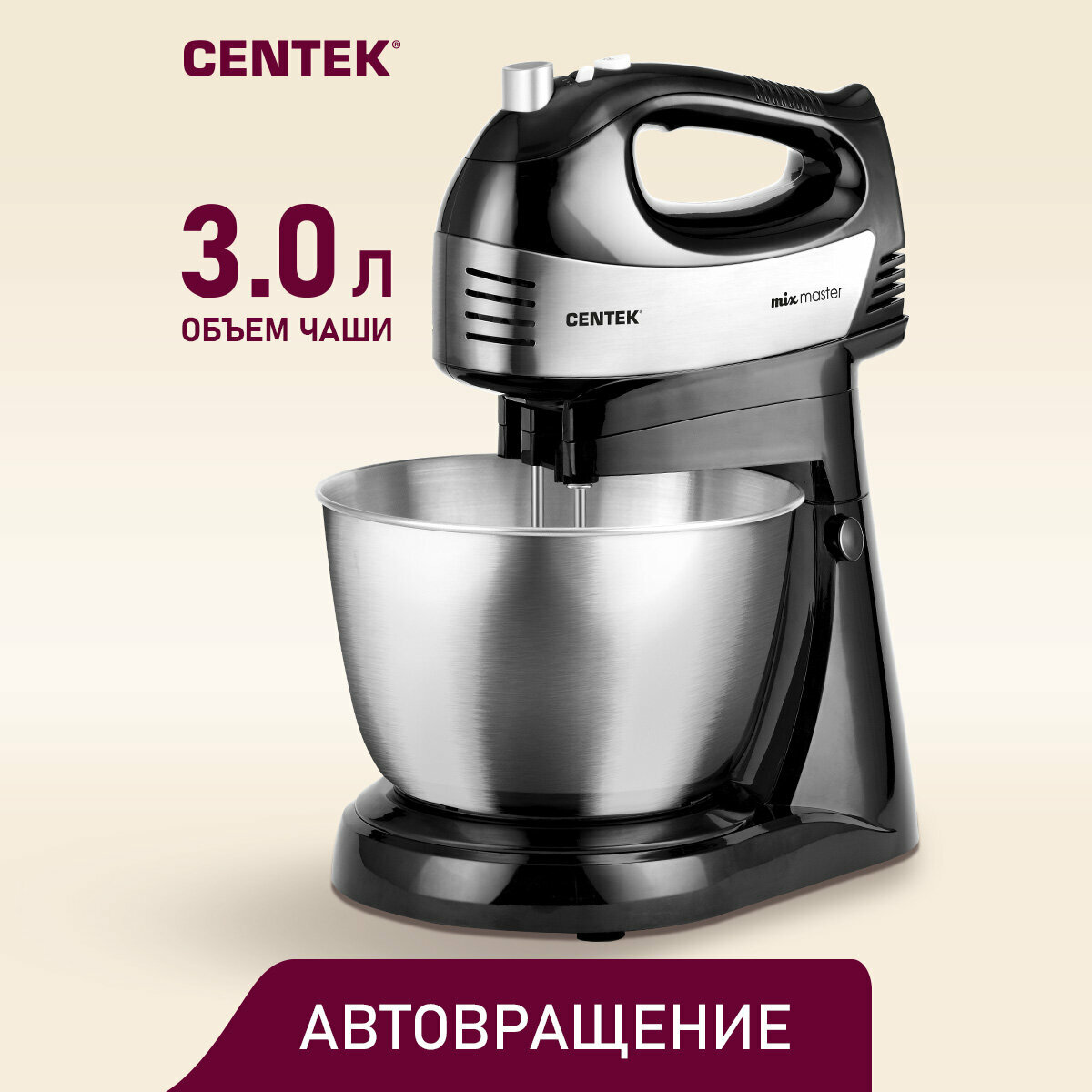Миксер Миксер с чашей Centek CT-1124 (черн/сталь) 600Вт, 5 скоростей +турбо, чаша 3.0л