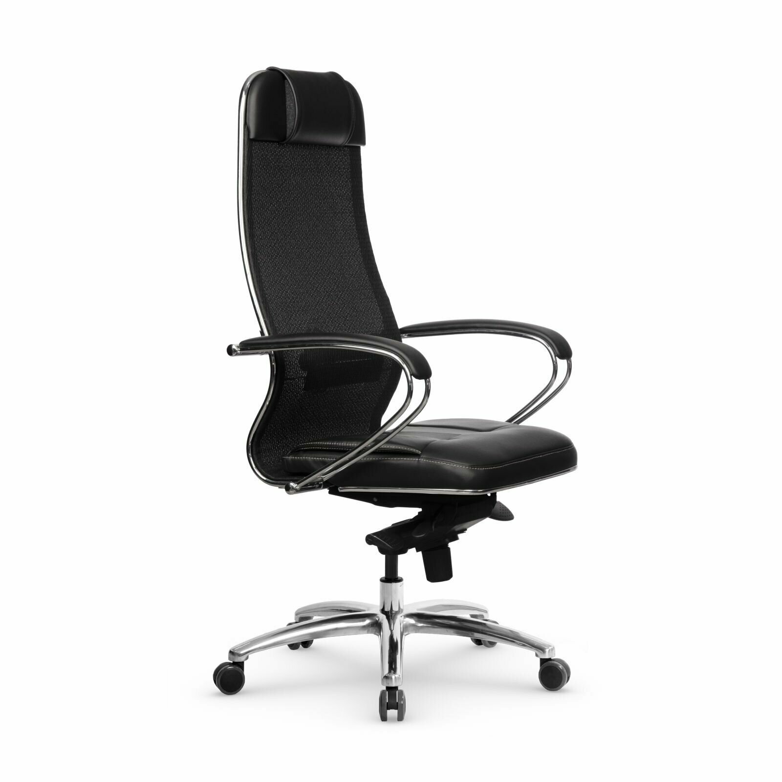 Кресло офисное Метта "SAMURAI" SL-1, 04, сверхпрочная ткань-сетка,кожа, черное