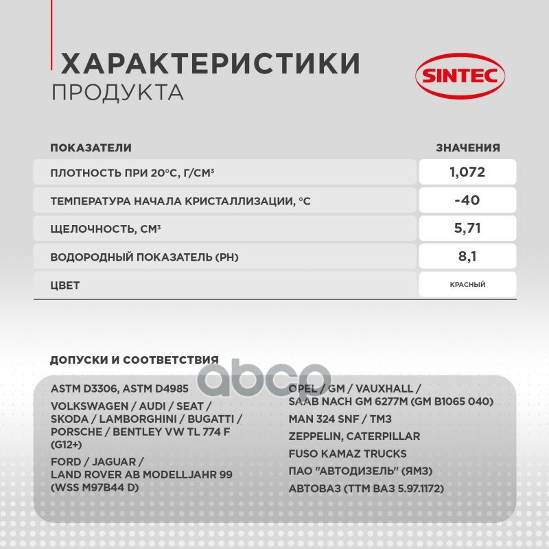 Антифриз SINTEC LUXE G12+ красный 1 кг 613500 434 ₽ Подробнее