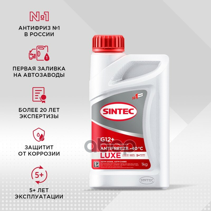 Акция! 5 кг по цене 4 кг SINTEC LUXE G12+ -40 карбоксилатный антифриз 5кг для двигателя автомобиля, охлаждающая жидкость синтек в авто, красный, готовый к применению 982 ₽ Подробнее