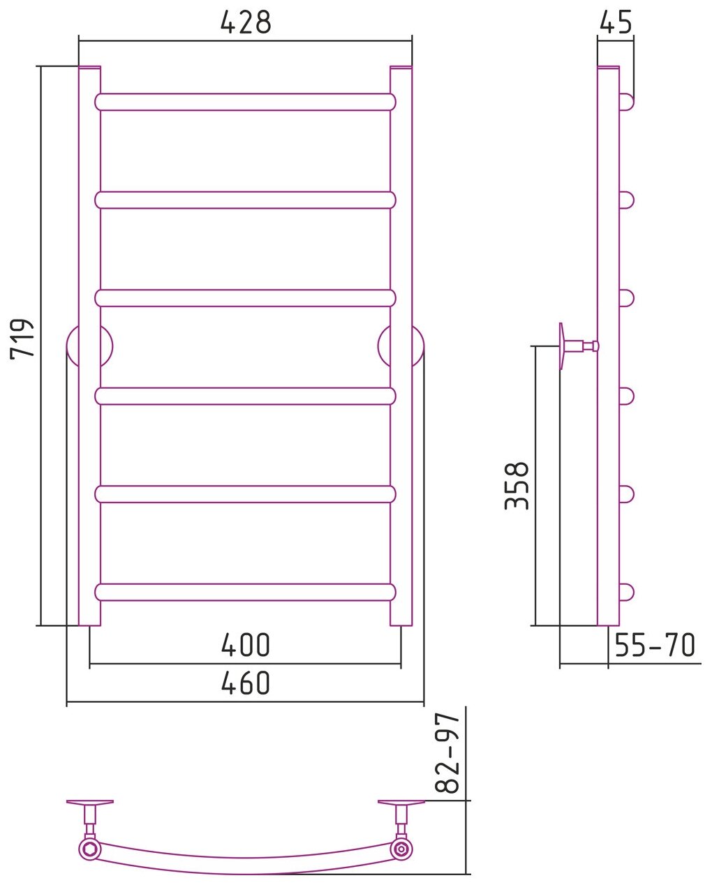 Полотенцесушитель водяной стилье "Универсал-50" 800х400 (6) Г 21