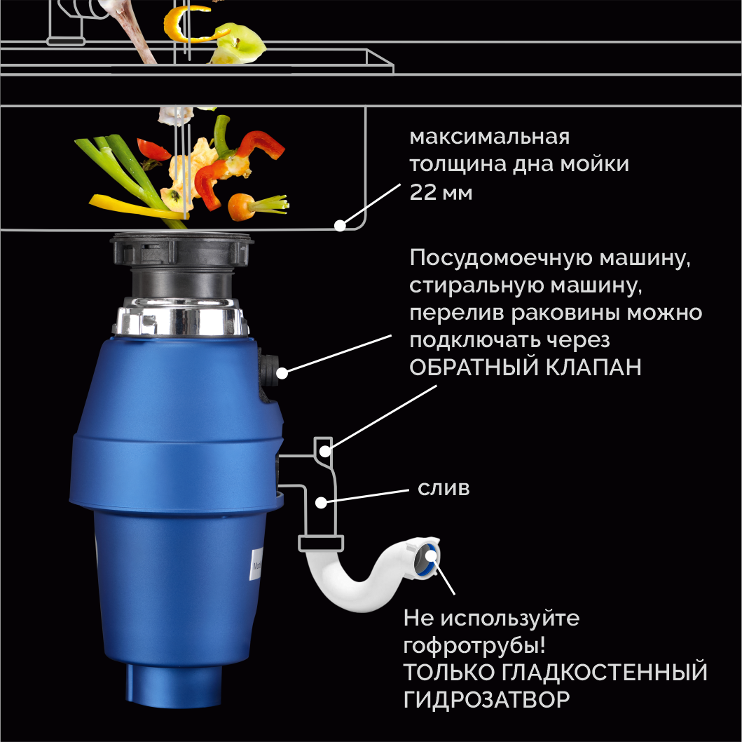 Бытовой измельчитель WASTE FIGHTER F-32 Standard синий, Pricemin 19 950 ₽ Подробнее
