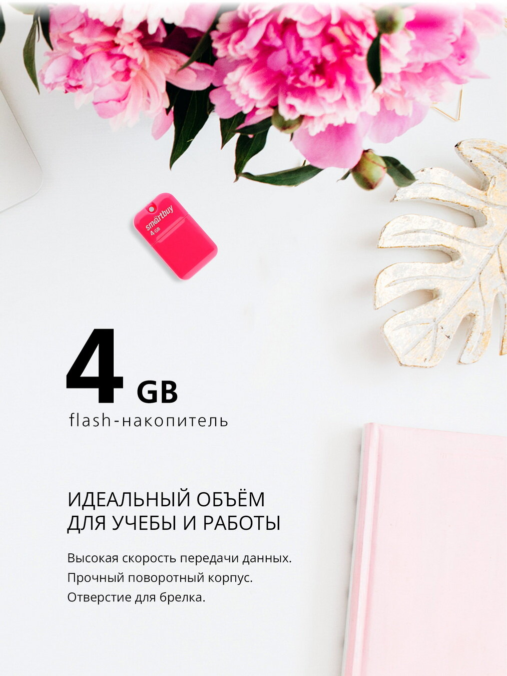 Флешка SmartBuy Art series 4 ГБ, 1 шт., розовый