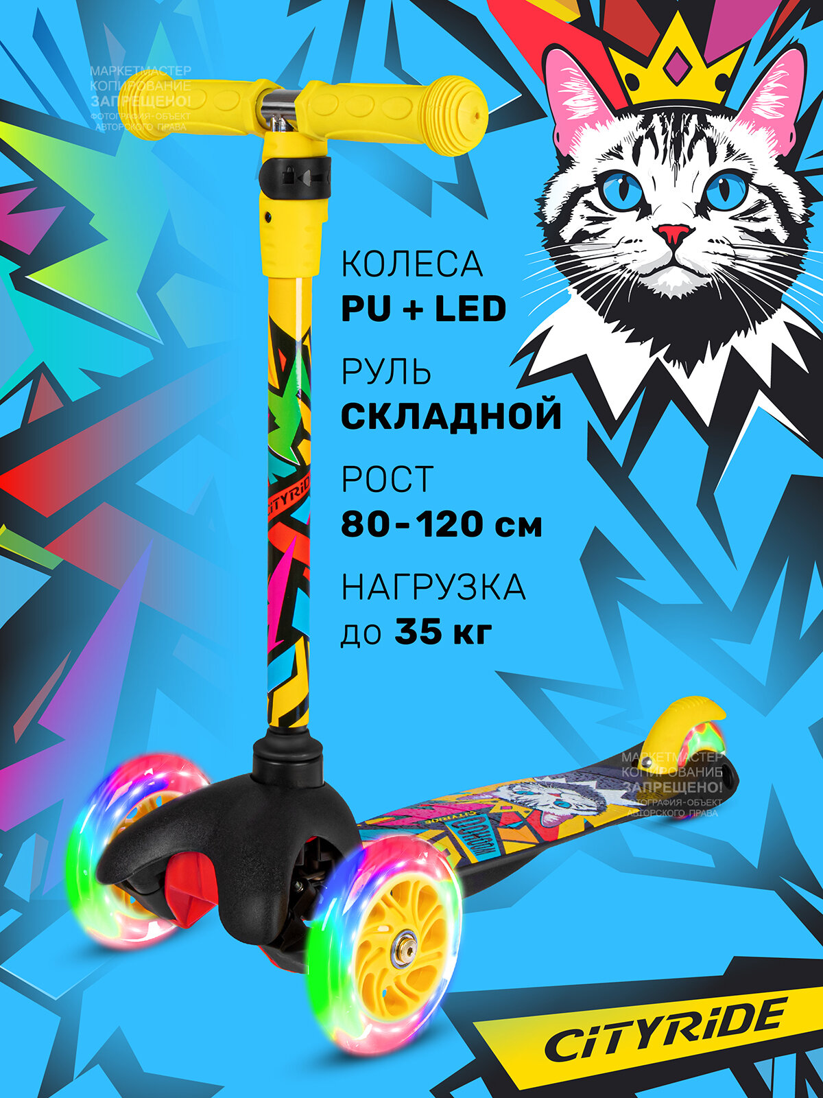 Самокат детский трехколесный ТМ CITYRIDE, колеса со светодиодами PU 110/76, руль телескопический, алюминиевый, CR-S4-05PR/CM 2 180 ₽ Подробнее
