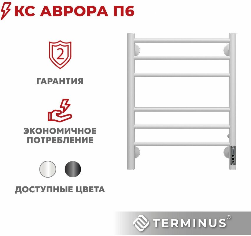 Полотенцесушитель Терминус КС Аврора П6 450/600 электрический, цвет белый матовый